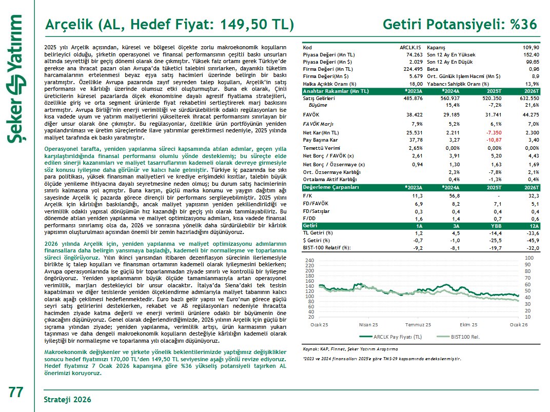 Şeker Yatırım - ARCLK - Hedef Fiyat