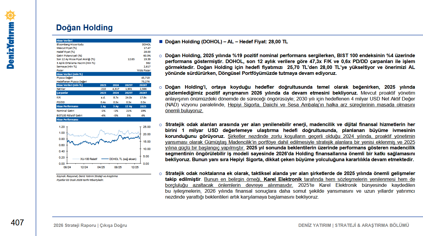 Deniz Yatırım, DOHOL - Doğan Holding için hedef fiyatını 25,39 TL'den 28 TL'ye yükseltti, tavsiyesini 'AL' olarak korudu