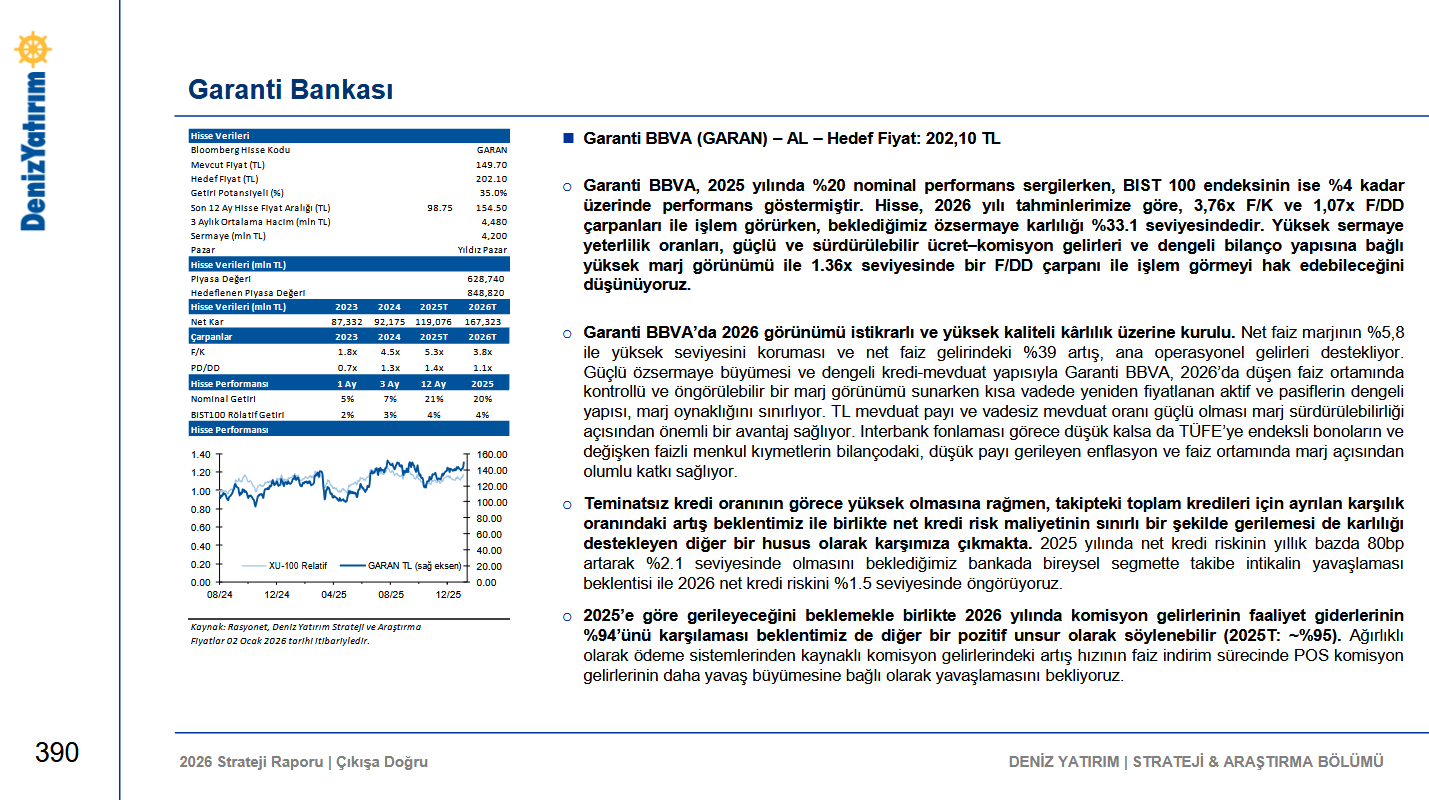 Deniz Yatırım, GARAN - Garanti BBVA için hedef fiyatını 198,6 TL'den 202,1 TL'ye yükseltti, tavsiyesini 'AL' olarak korudu