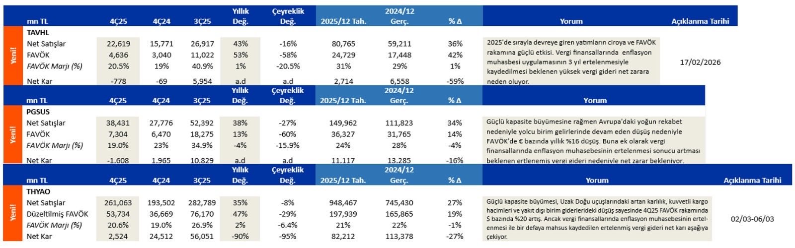 Kurum THY, Pegasus ve TAV Havalimanları için 2025-4.Çeyrek bilanço beklentilerini paylaştı.