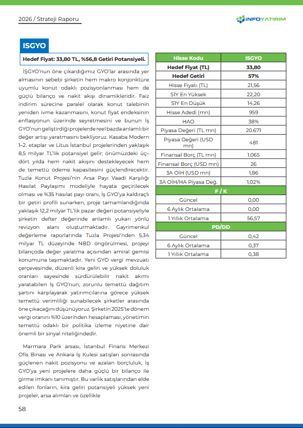 İnfo Yatırım, ISGYO - İş GYO için hedef fiyatını 33.80 TL olarak korudu, hisseyi model portföyünde tuttu.