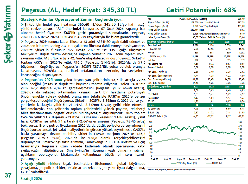 Şeker Yatırım, PGSUS - Pegasus için hedef fiyatını 365,6 TL'den 345,3 TL'ye düşürdü, tavsiyesini 'AL' olarak korudu
