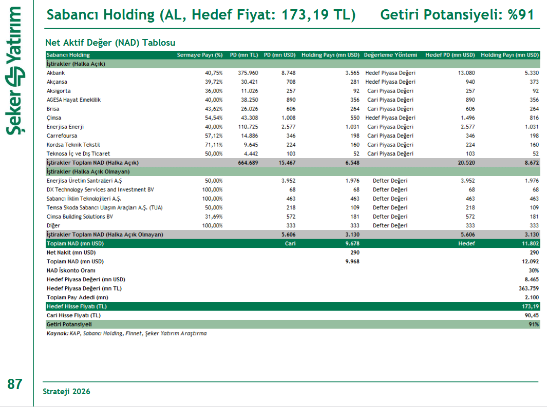 Şeker Yatırım - SAHOL - Hedef Fiyat ve NAD
