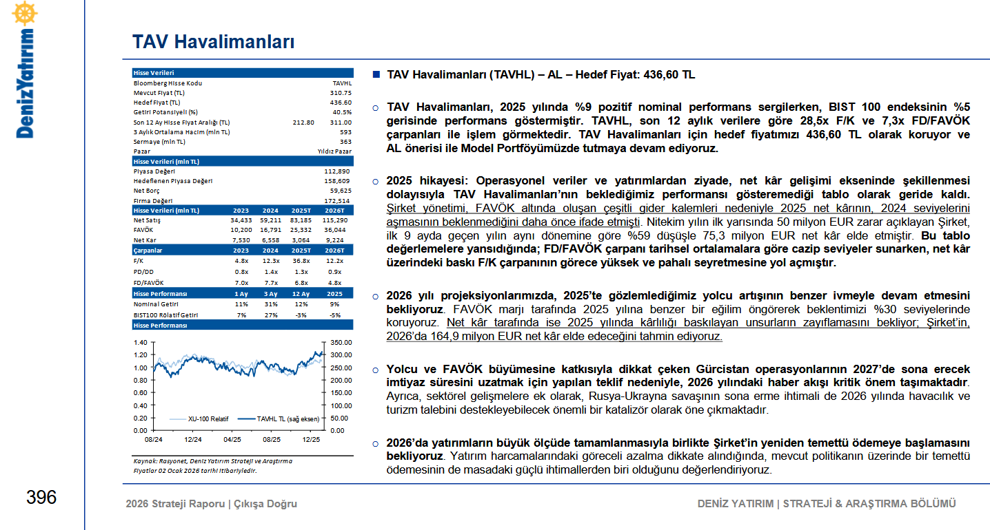Deniz Yatırım, TAVHL - TAV Havalimanları için hedef fiyatını 436.6 TL, tavsiyesini "al" olarak korudu