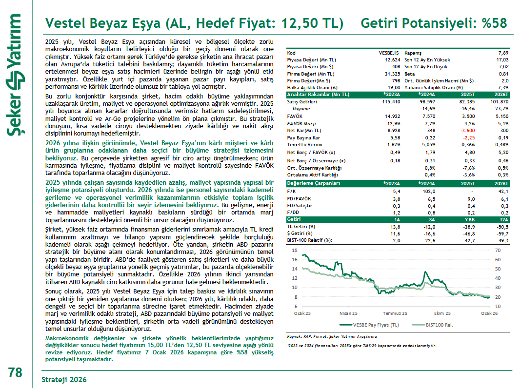 Şeker Yatırım - VESBE - Hedef Fiyat
