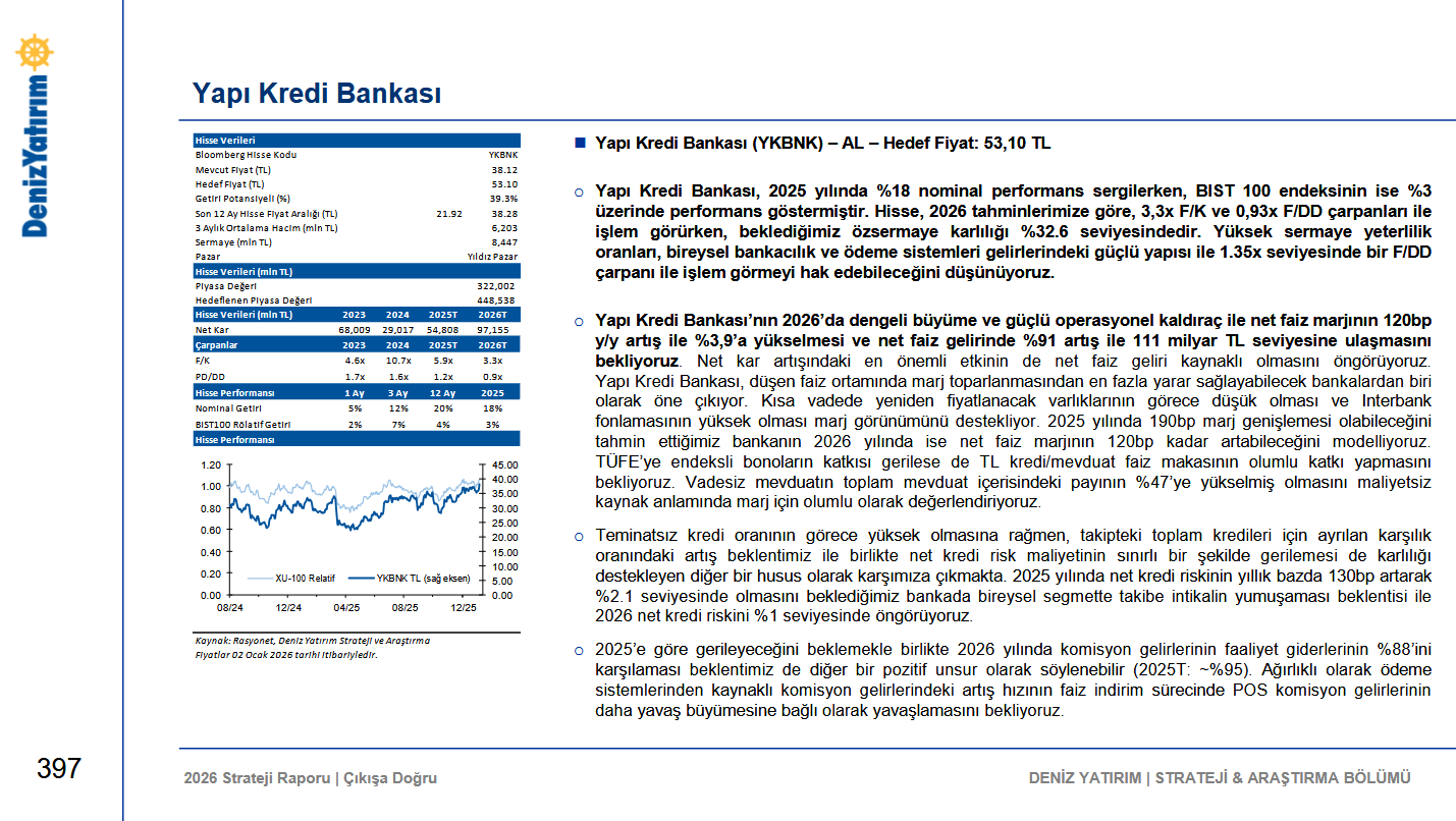 Deniz Yatırım, YKBNK - Yapı Kredi için hedef fiyatını 47,5 TL'den 53,1 TL'ye yükseltti, tavsiyesini 'AL' olarak korudu